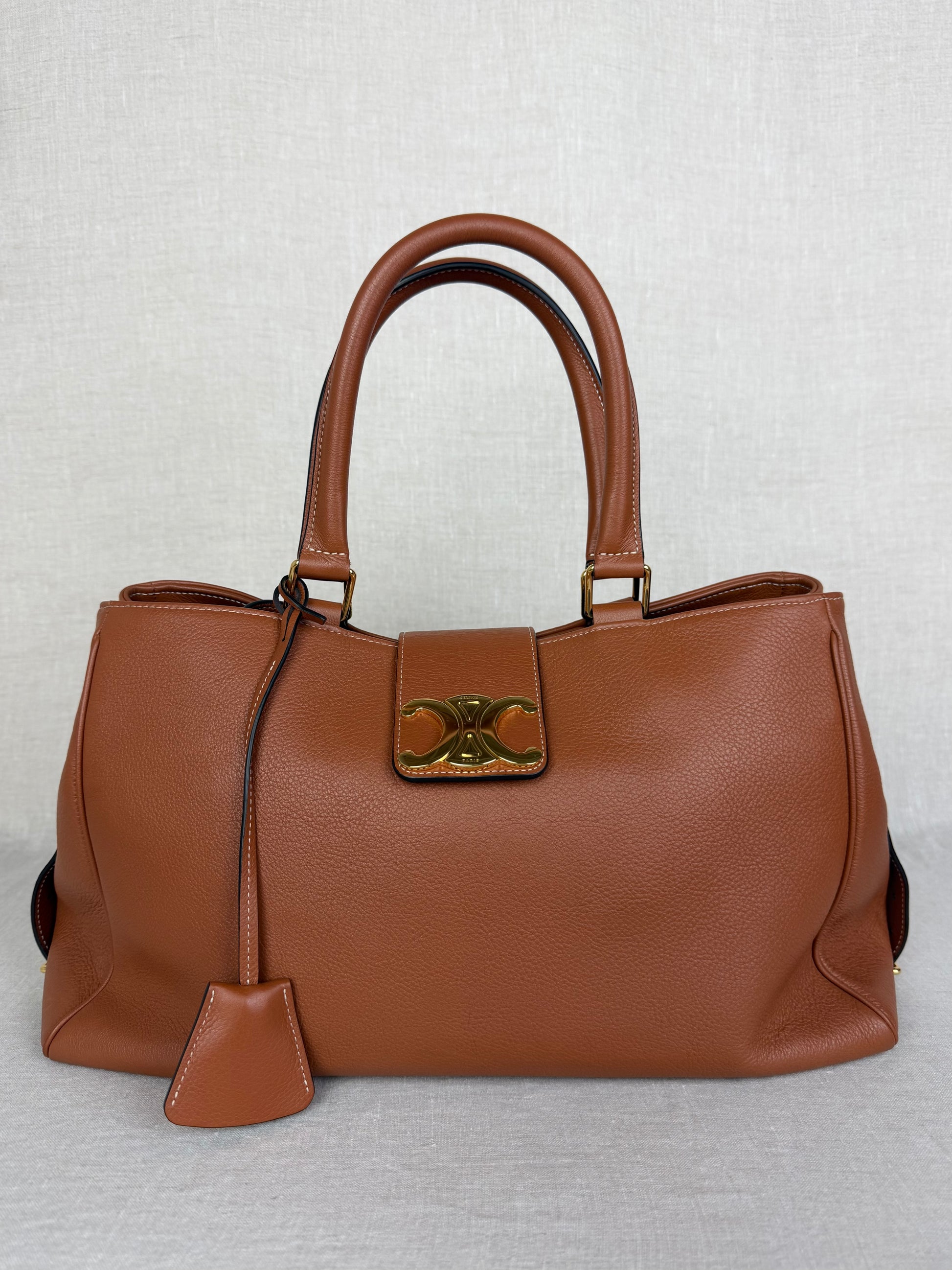 Celine Appoline Shoulder Bag in Brown Calfskin with Gold Hardware